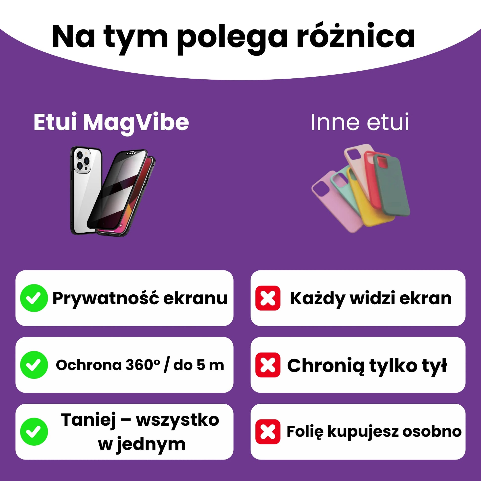 To innowacyjne etui zapewnia najwyższy poziom ochrony. Ekran jest niewidoczny pod kątem, dzięki czemu nikt nie zajrzy Ci w telefon, a z przodu obraz pozostaje idealnie wyraźny. Chroń swoje dane, prywatne wiadomości, firmowe informacje i swoją prywatność dzięki temu nowoczesnemu rozwiązaniu.
